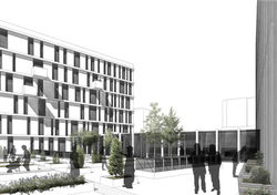 The 15,000sqm centre is made up of two 7-storey volumes which are placed with north-south orientation, either side of a communal garden. It comprises over 200 residential units, social amenities, fitness and well-being facilities, recreational spaces, and shared communal areas – all under one roof, so that in winter there is no need to leave the building.